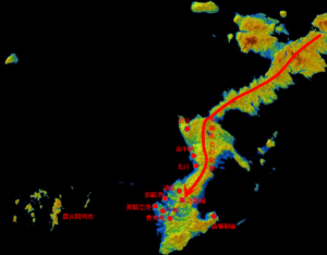 沖縄本島の背骨と言える連山が「来龍」にあたり、