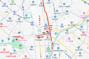 南には真駒内があり、さっぽろ湖から定山渓を通って流れ来る豊平川も